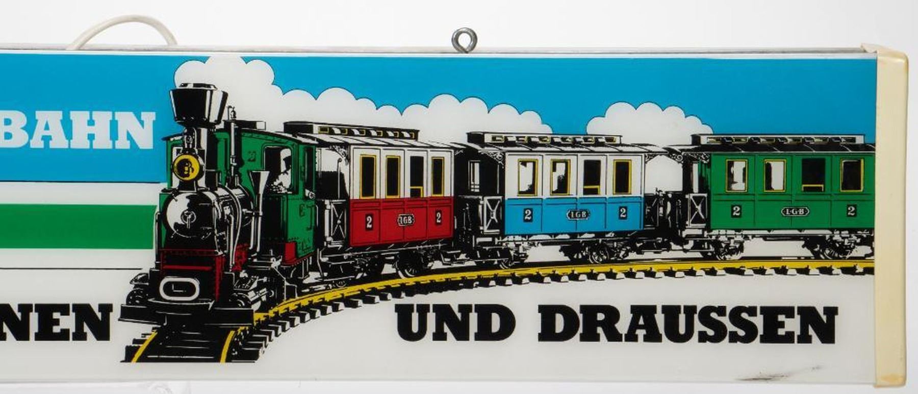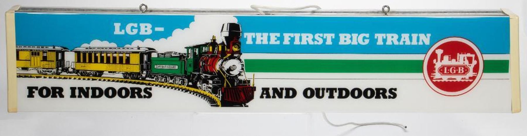 LGBLighted Store Sign (dusty)About 4 feet long and 1 foot high. Plug has been cut off cord. End caps have yellowed and split