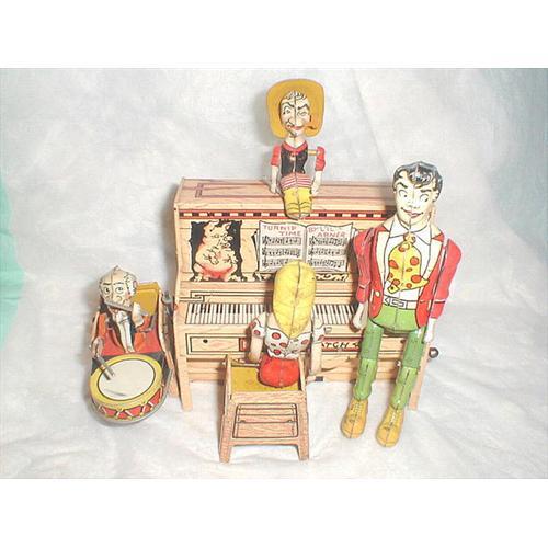 THIS IS AN ORIGINAL LI'L ABNER AND HIS DOGPATCH BAND BY UNIQUE ART MANUFACTURING CO., INC., NEWARK, NJ WHICH WAS PRODUCED IN THE EARLY 1940'S, PAT. NO.1.742.844. LI'L ABNER DANCES, GRANDPA PLAYS THE DRUMS, DAISY MAE PLAYS THE PIANO AND GRANDMA, WHO SITS ATOP THE PIANO, CONDUCTS. THIS IS QUITE UNIQUE AND YOU WILL ENJOY HOURS WATCHING THIS.