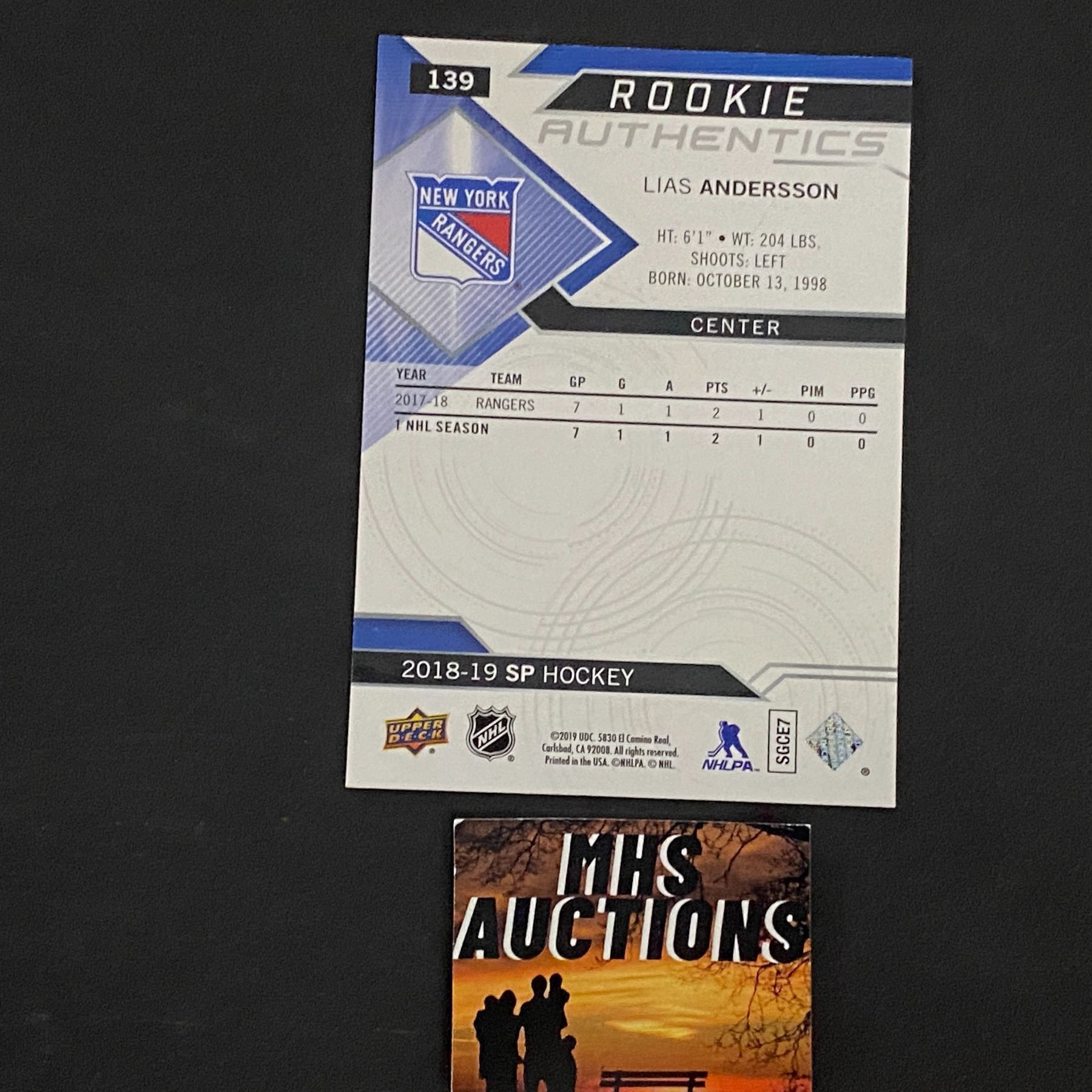 LIAS ANDERSSON 2018-19 SP HOCKEY ROOKIE CARD