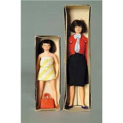 Lot 442: "LIBBY" AND "JUDY" LITTLECHAP WITH EXTRA LITTLECHAP CLOTHING. "Libby" is in original box with terry sarong. "Judy" is in a three-piece suit but in Dr. John's box. CONDITION: Boxes have some taping and wear. Dolls appear to be in very good original condition. 1-1189 JL218