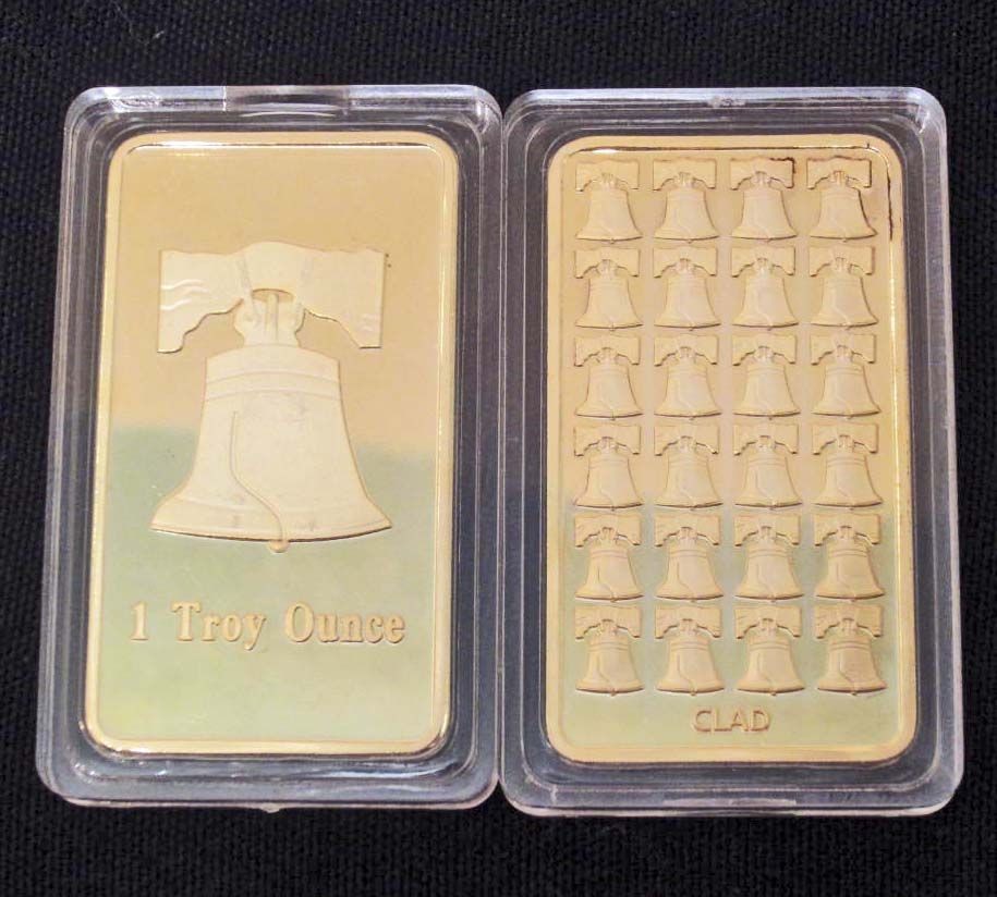 LIBERTY BELL 1 OZ. .999 GOLD CLAD INGOT BAR