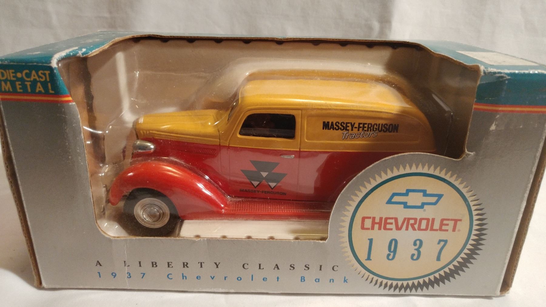 LIBERTY CLASSICS 1937 DIE CAST CHEVROLET BANK. MASSEY FERGUESON TRACTORS LOGO. NEW IN BOX