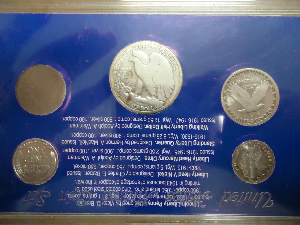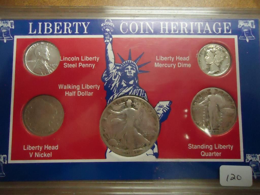 INCLUDES STEEL WAR CENT, LIBERTY "V" NICKEL, MERCURY DIME, STANDING LIBERTY QUARTER AND WALKING LIBERTY HALF DOLLAR