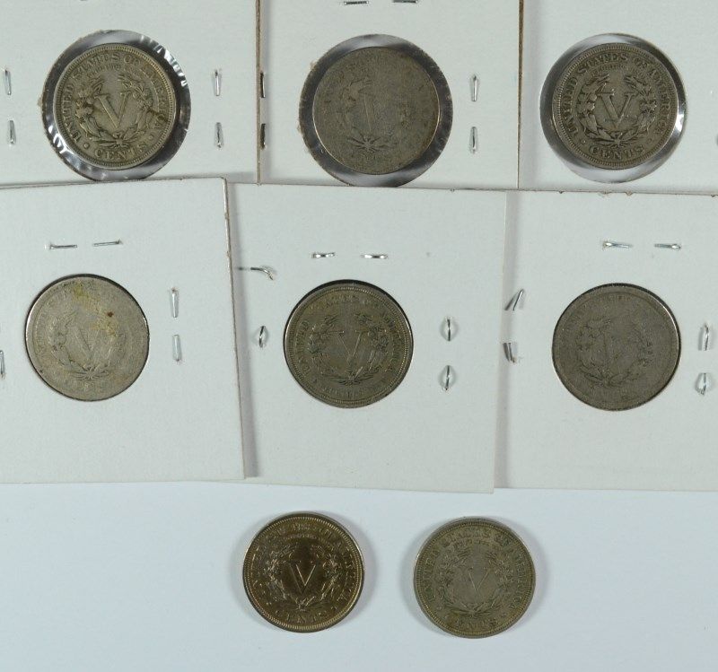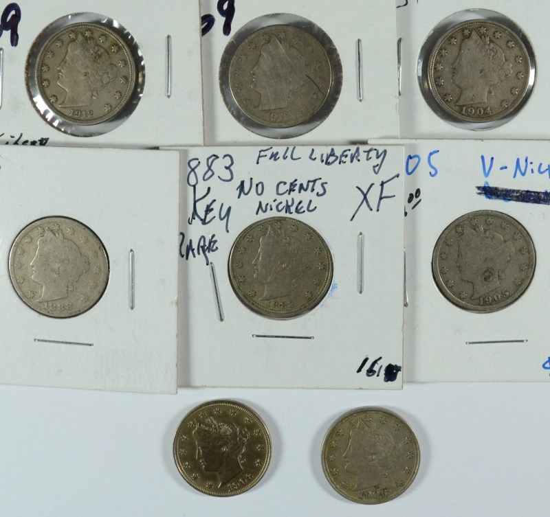 LIBERTY NICKEL LOT: 1906 AU, 1888 AG, 1883 NC XF, 1906 XF+, 4 MORE CIRC COMMONS