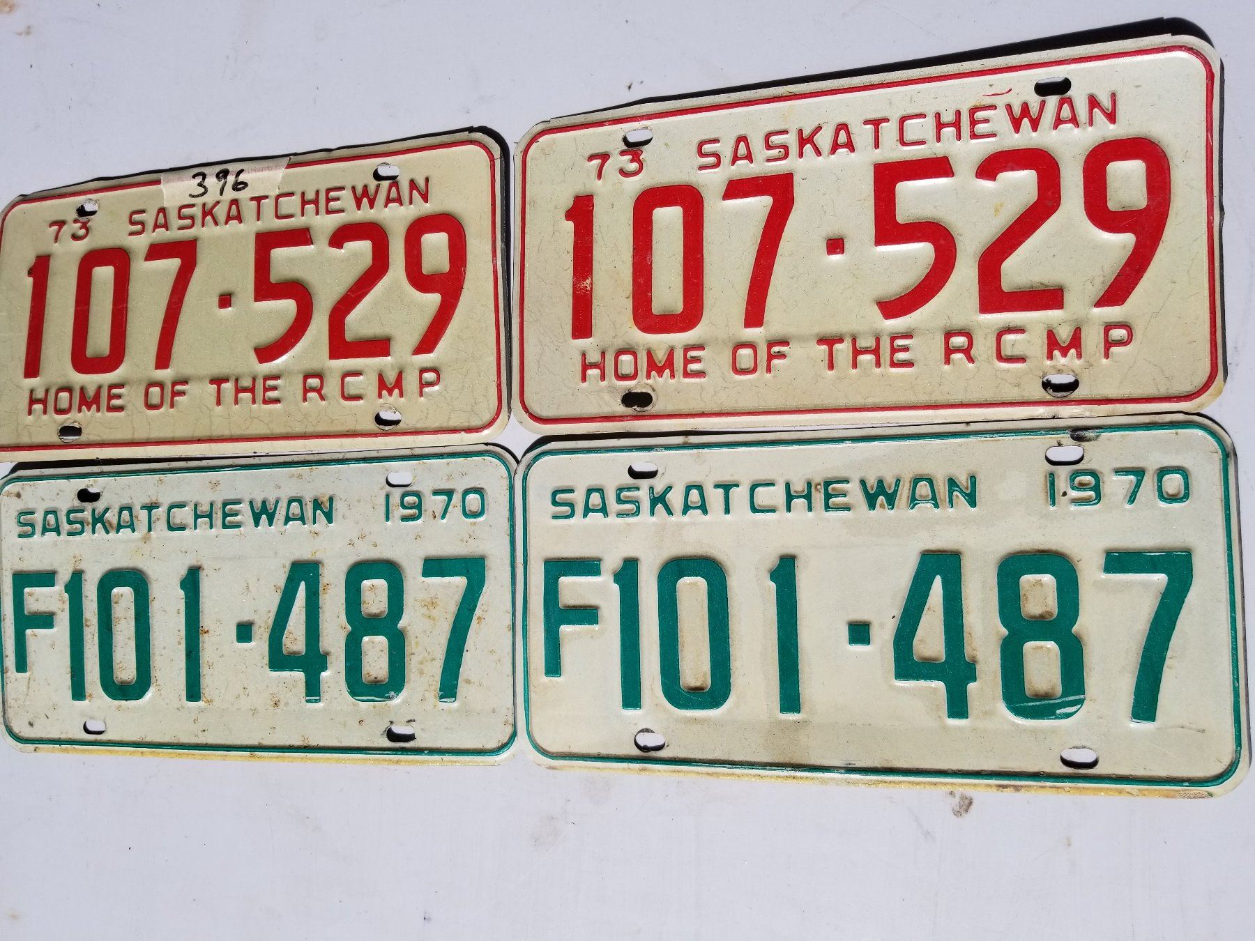 LICENCE PLATES (SASK) *1970, 1973* (MATCHING PLATES) *RCMP*
