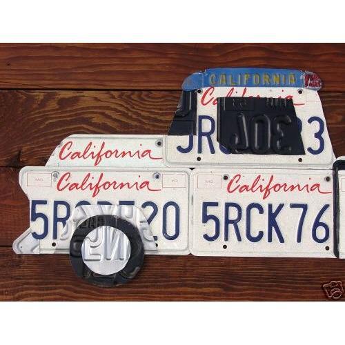 ONE OF A KIND....A fitting tribute to America's fascination with the open road and our equally intense passion for the states of California and Oregon. Each truck is individually handcrafted and cut from vintage license plates. PURCHASE this unique heartfelt memorabilia for your personal collection for your favorite truck enthusiast. 48"x22"x 1/2"
