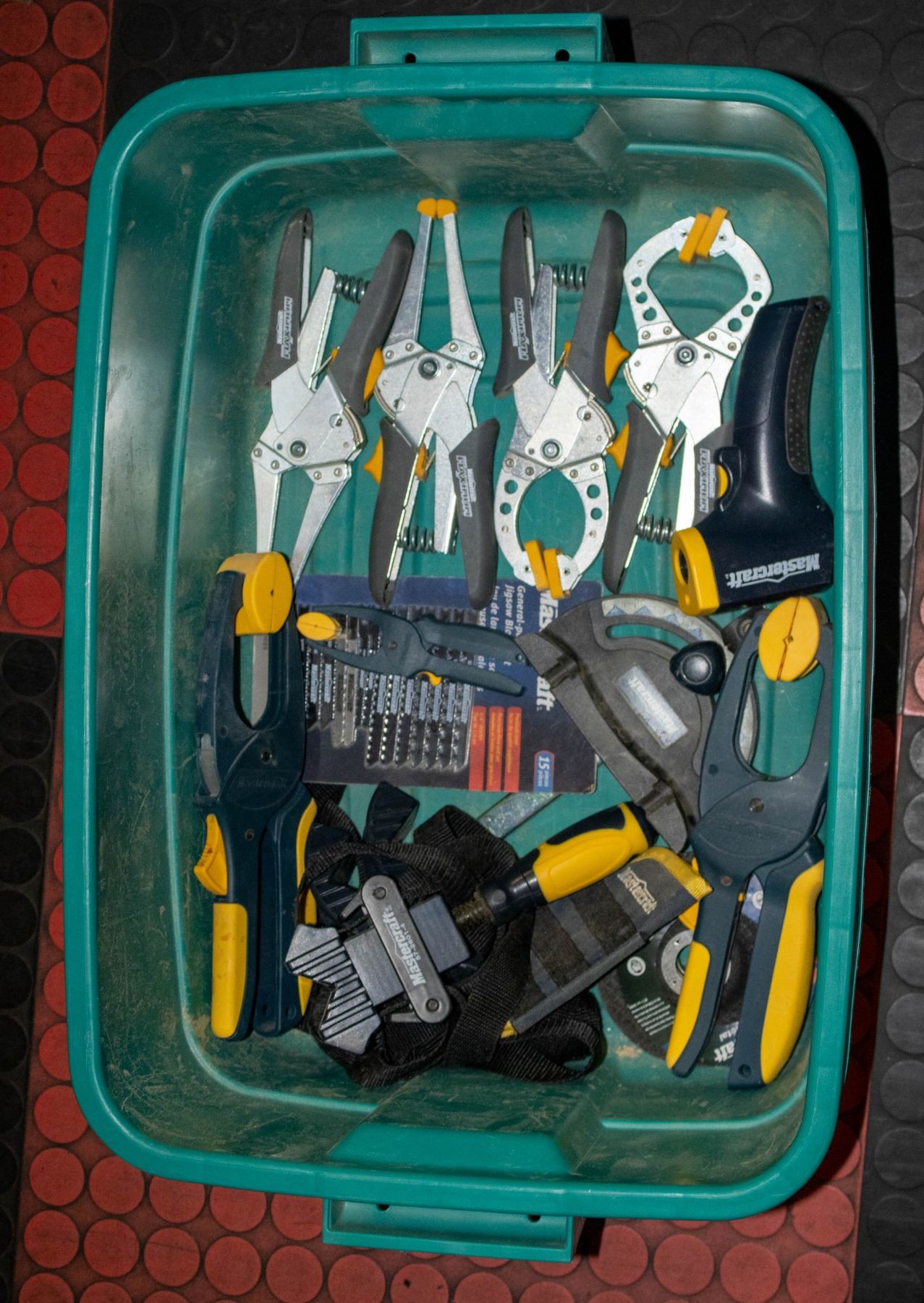 LIDDED TOTE OF ASSORTED ALL MASTERCRAFT TOOLS