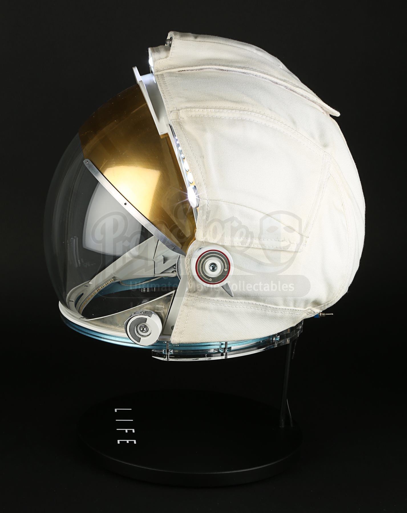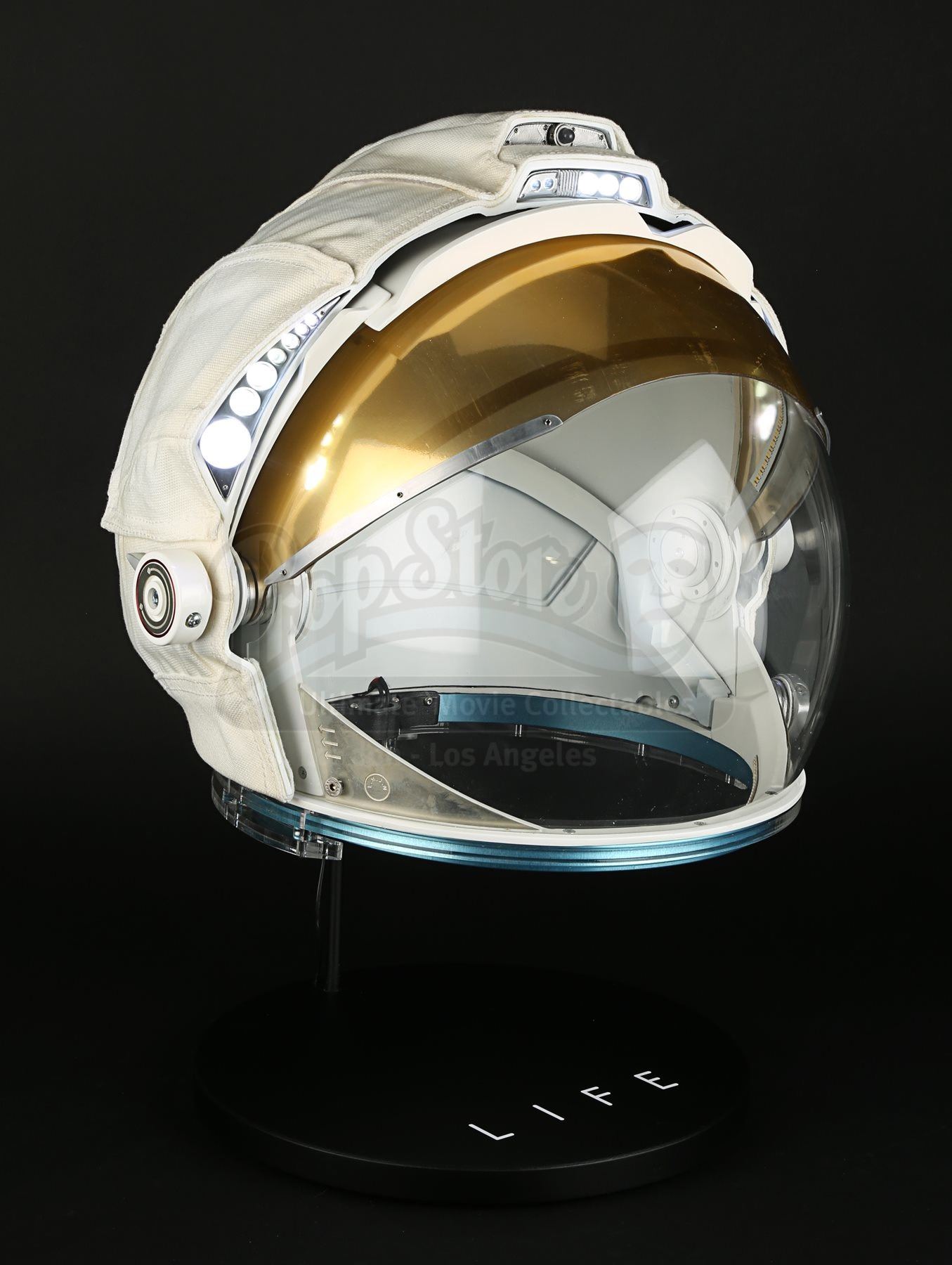 An EVA helmet from Daniel Espinosa’s horror sci-fi Life (2017). An extravehicular activity helmet was worn by Rory Adams (Ryan Reynolds) at the beginning of the film when capturing the Martian probe; another was later worn by Ekaterina Golovkina (Olga Dykhovichnaya) when she attempted to repair the overheating communications systems.