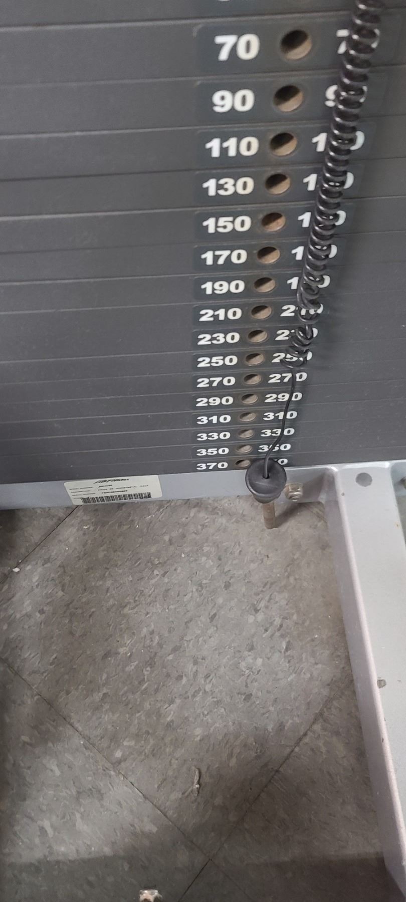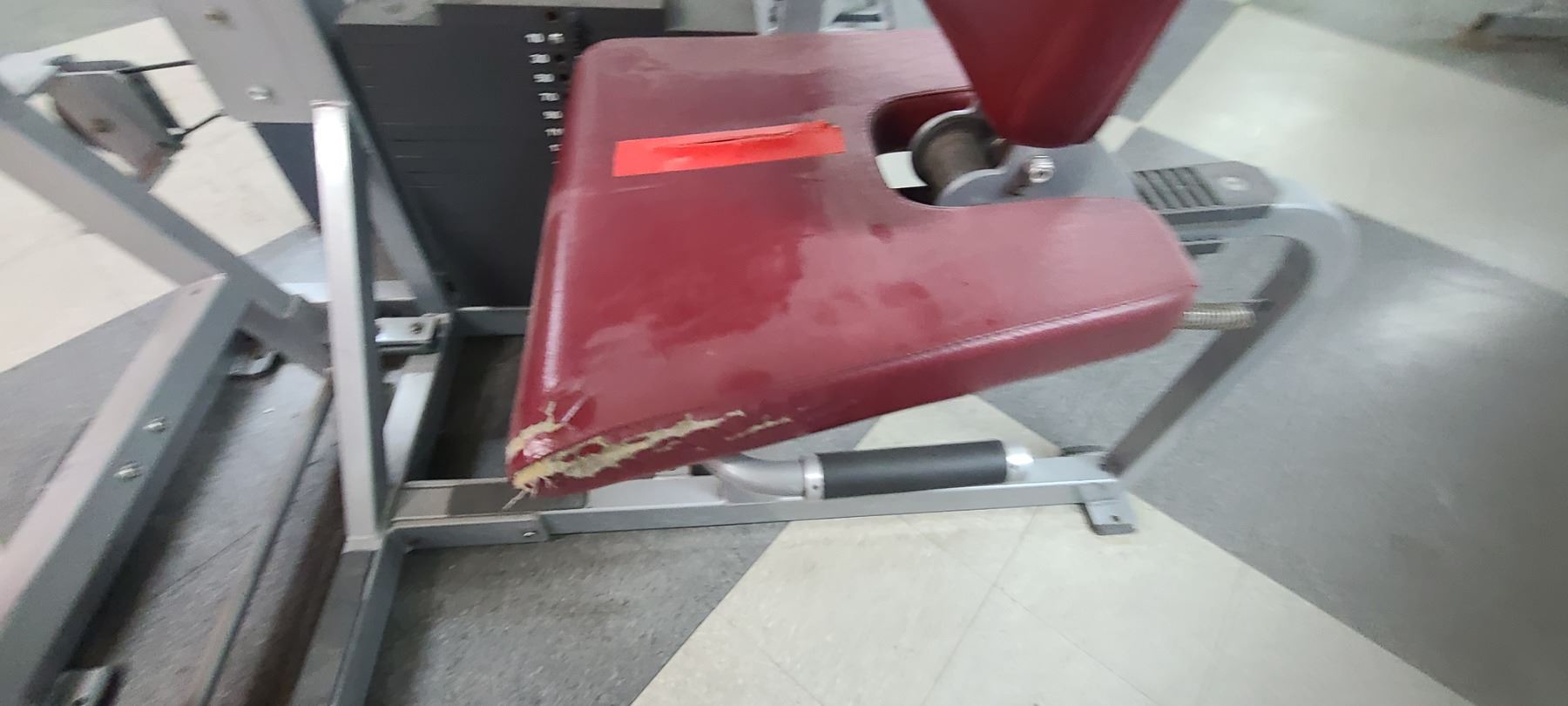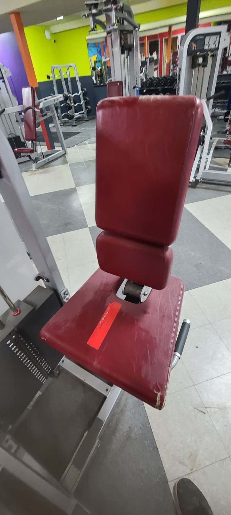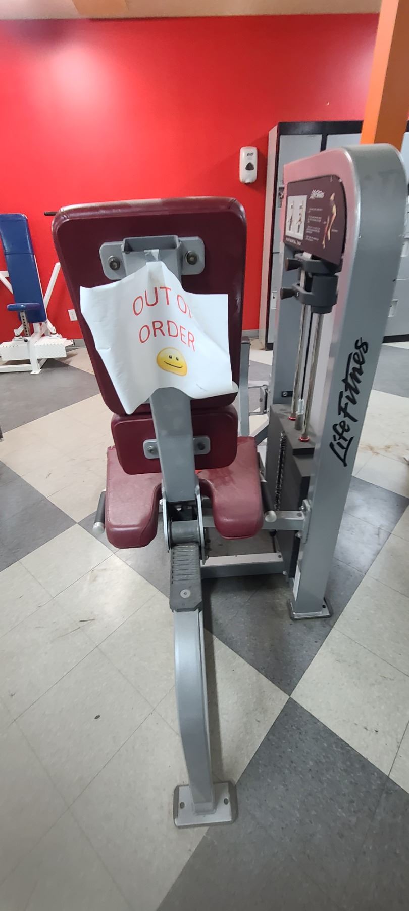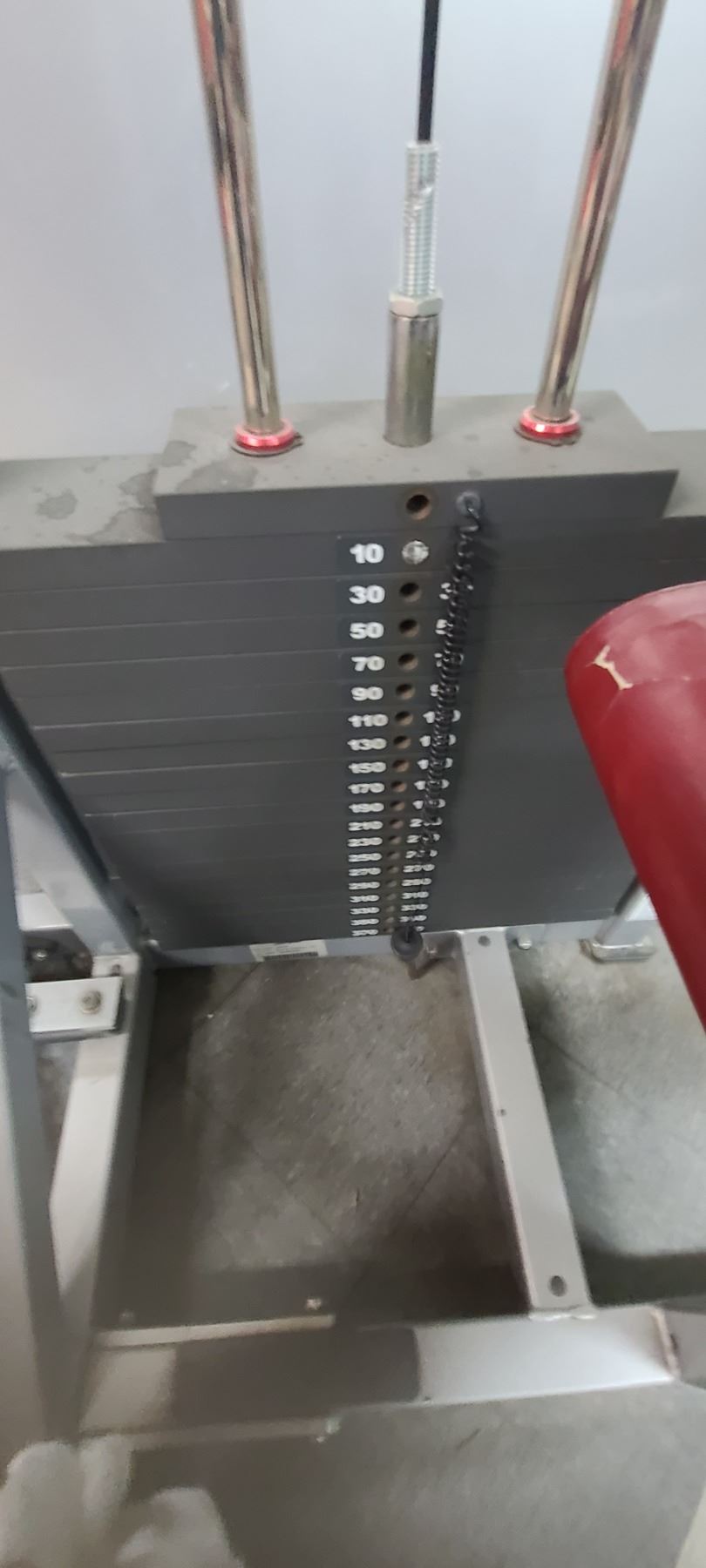 LIFE FITNESS HORIZONTAL CALF MACHINE. *NOTE*: NOT ON MACHINE SAYS OUT OF ORDER: HOWEVER IT APPEARS IN WORKING ORDER - THERE IS SHARP/SHEERED BOLT WHERE THE WIRE MEETS THE WEIGHT- PLEASE SEE IMAGES WHERE IT IS POINTED OUT