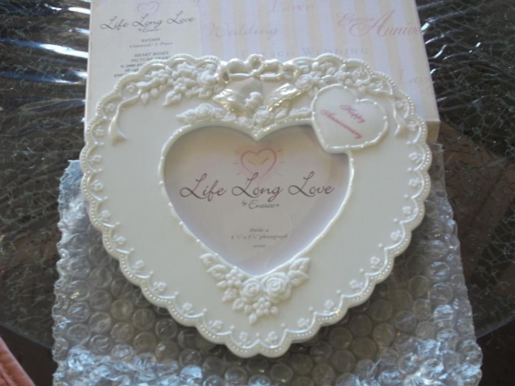 LIFE LONG LOVE BY ENESCO HEART AND ROSES PICTURE FRAME NIB