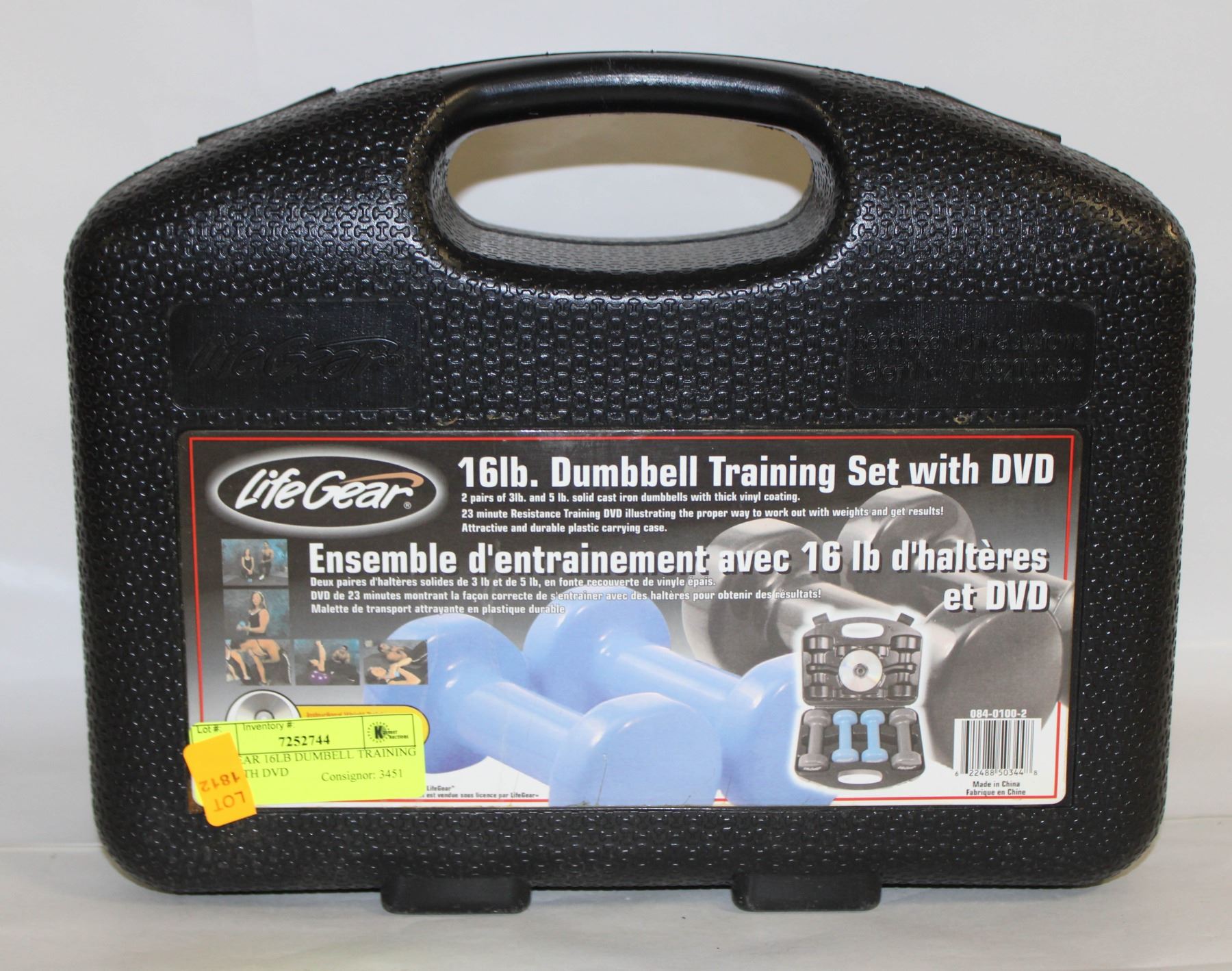LIFEGEAR 16LB DUMBELL TRAINING SET WITH DVD