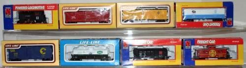 LIFELIKE 8302 ATSF 0-4-0 DOCKSIDE LOCO WITH 7 FREIGHT CARS.