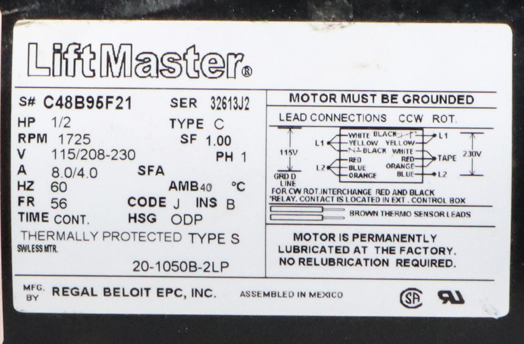 LIFT MASTER 1/2 HP ELECTRIC MOTOR