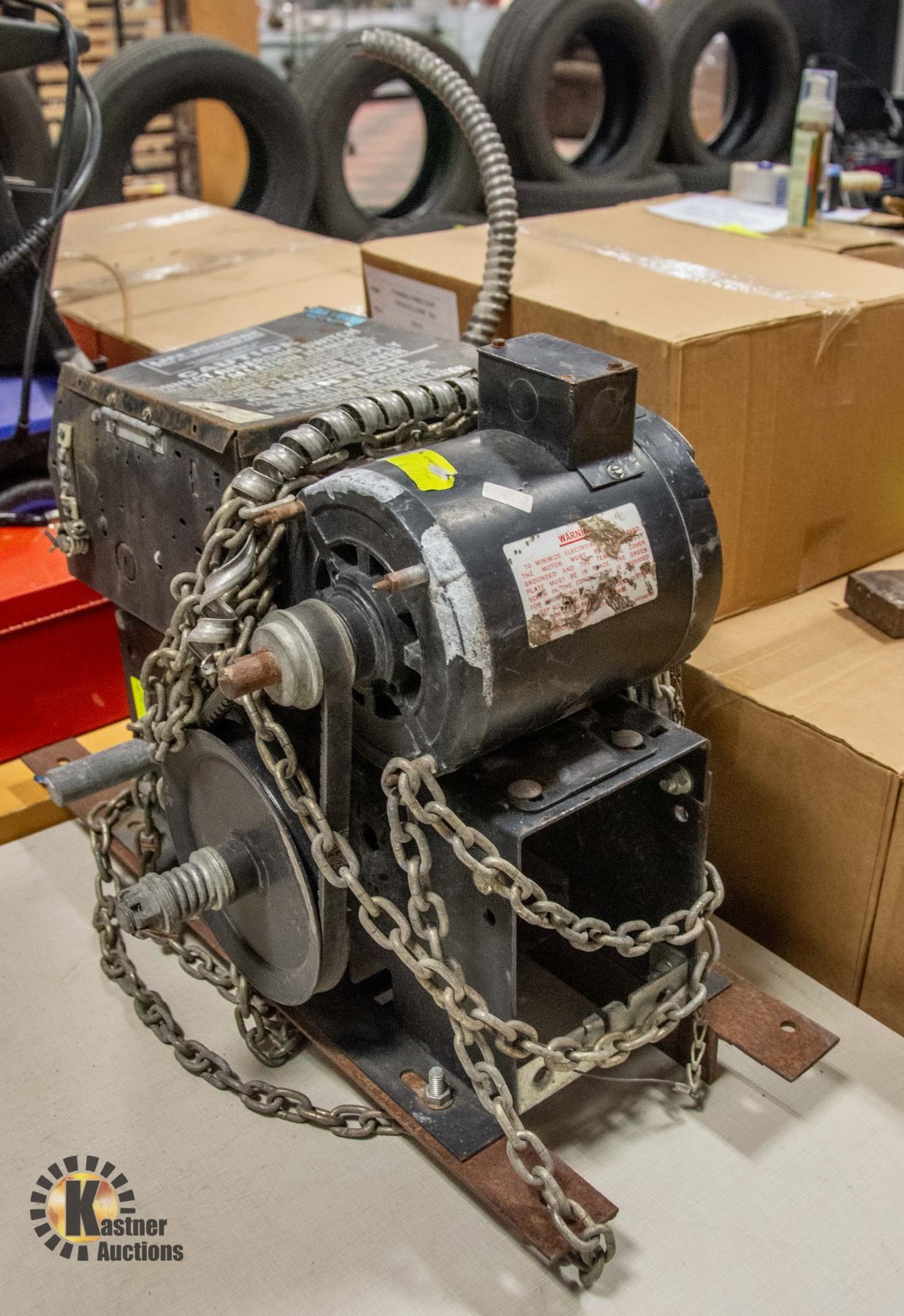 BAY DOOR DRIVE MOTOR, UNTESTED **ALL ITEMS MUST BE REMOVED BY 5PM SATURDAY, JANUARY 6TH 2023. ALL REMAINING ITEMS WILL BE SUBJECT TO A $6.00 PER DAY STORAGE CHARGE. ANY ITEMS REMAINING AFTER MONDAY, JANUARY 22ND, 2023 WILL BE CONSIDERED FORFEITED. NO REFUNDS WILL BE ISSUED FOR FORFEITED ITEMS. TO SCHEDULE A PICK UP APPOINTMENT CLICK HERE
