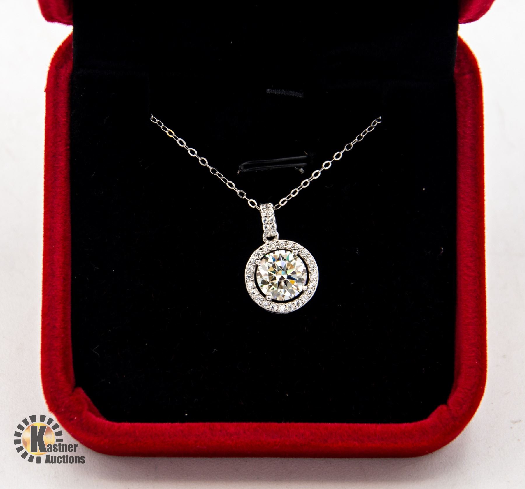 2.00 CARAT WITH 34 CUBIC ZIRCONIUM IN HALO IN PENDANT. GRA CERTIFIED APPRAISED VALUE $1,680.00 **ALL ITEMS MUST BE REMOVED BY 5PM SATURDAY, OCTOBER 21ST 2023. ALL REMAINING ITEMS WILL BE SUBJECT TO A $6.00 PER DAY STORAGE CHARGE. ANY ITEMS REMAINING AFTER MONDAY, NOVEMBER 6TH, 2023 WILL BE CONSIDERED FORFEITED. NO REFUNDS WILL BE ISSUED FOR FORFEITED ITEMS. TO SCHEDULE A PICK UP APPOINTMENT CLICK HERE