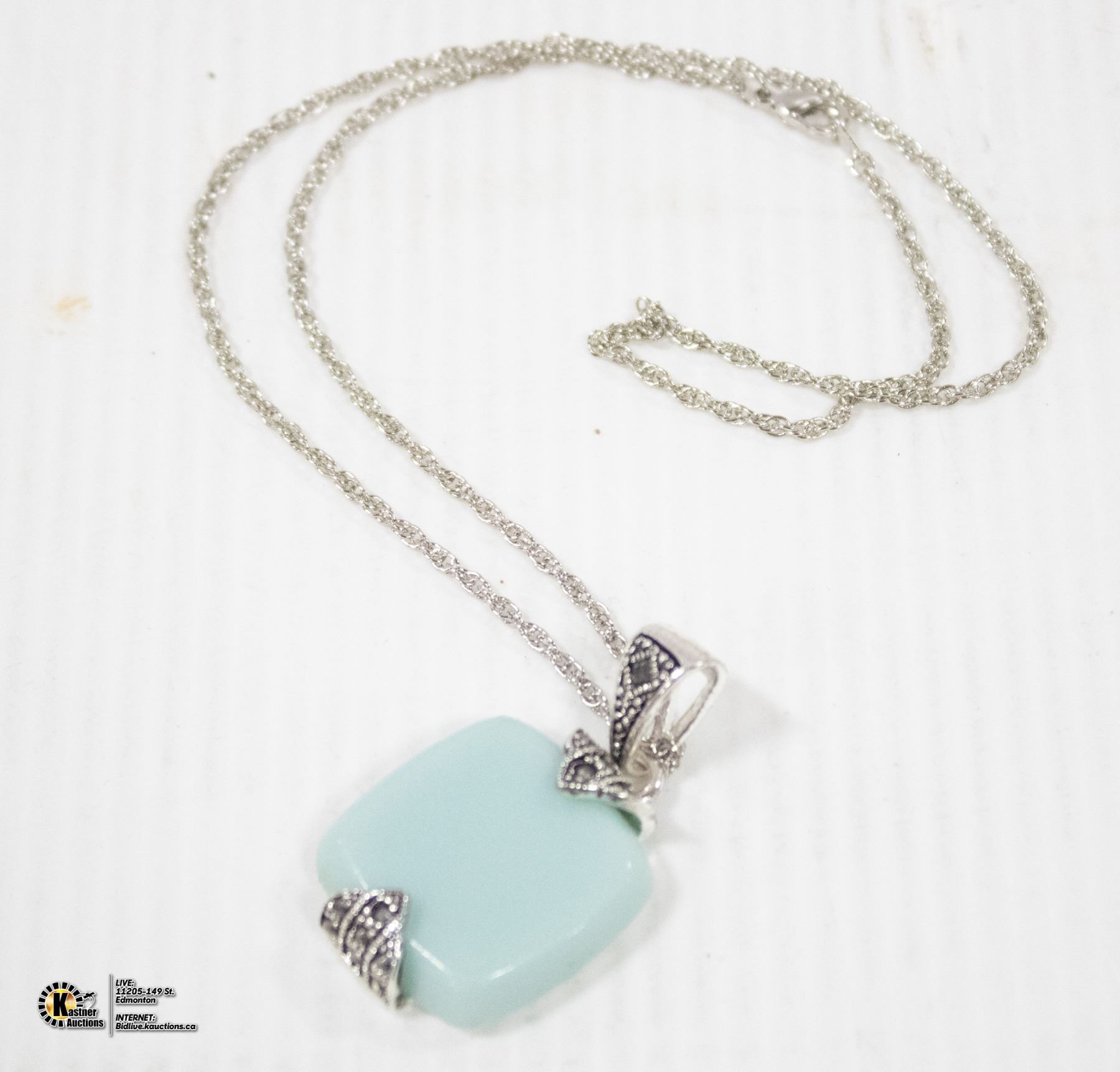 LIGHT BLUE STONE AND SILVER TONE NECKLACE