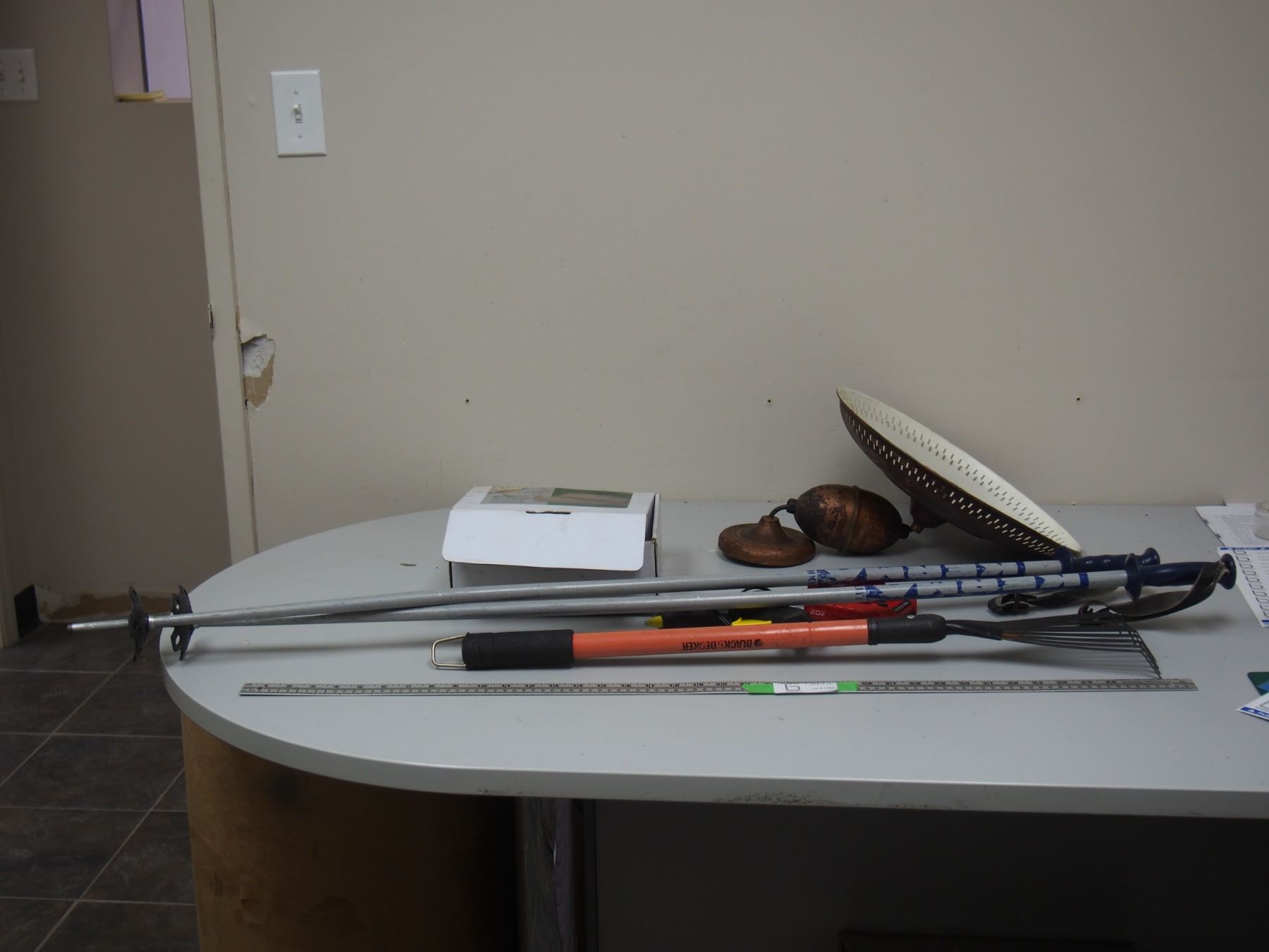 LIGHT SHADE, SKI POLES BRAKE SHOES PLUS MISC