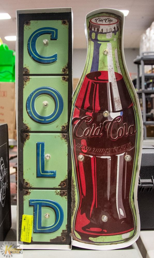 LIGHT UP COCA COLA SIGN, ALL LIGHTS WORK 22IN HIGH