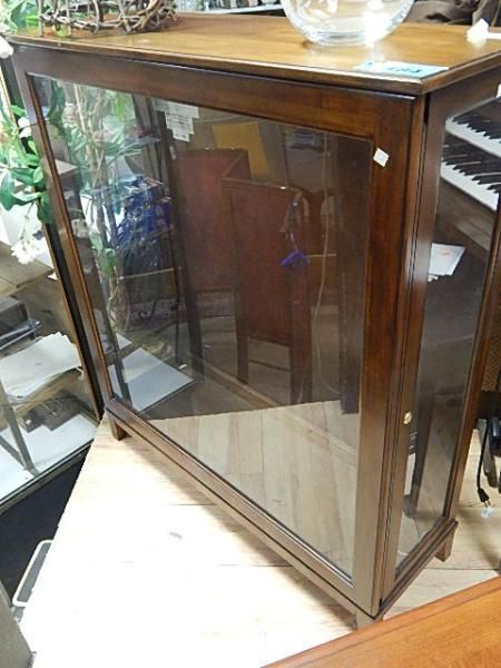 LIGHTED DISPLAY CASE WITH SLIDING FRONT DOOR GLASS SHELVES & KEY NOT AVAILABLE