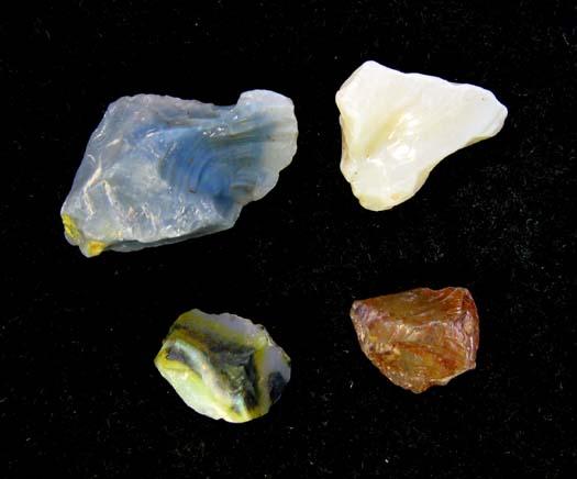 BEAUTIFUL LIGHTNING RIDGE ROUGH OPAL SET OF 4 - 82.66 cts TOTAL - VARIOUS COLORS. These gems were mined at the Lightning Ridge Opal Fields. The gemstones you see are the exact ones you will receive. #104