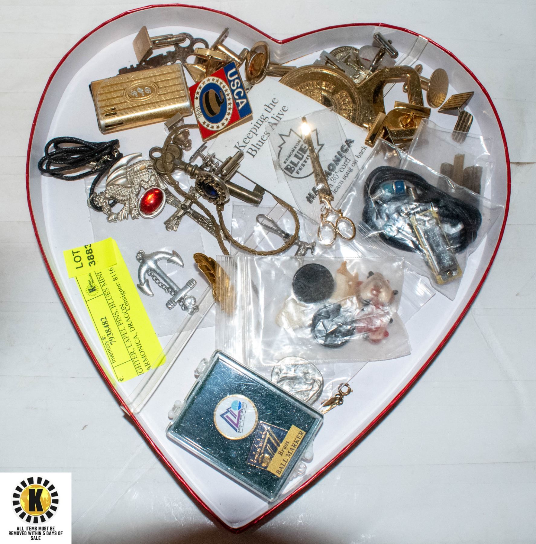 LIGHTER, LAPEL PINS, BLUES MINI HARMONICA, DRAGON