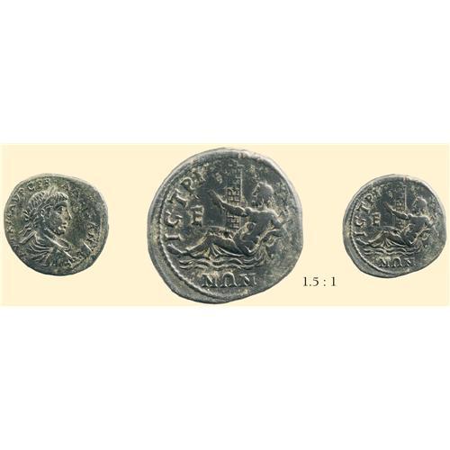 Severus Alexander, 222-235 AD. 5 Assaria (14.51 g). <SPAN STYLE=`FONT-SIZE:10.0PT;FONT-FAMILY:SYMBOL;COLOR:#333333`>AU K M AUR </SPAN>C<SPAN STYLE=`FONT-SIZE:10.0PT;FONT-FAMILY:SYMBOL;COLOR:#333333`>EB - ALEXANDRO</SPAN>C, laureate, draped and cuirassed bust of Severus Alexander right / <SPAN STYLE=`FONT-SIZE:10.0PT;FONT-FAMILY:SYMBOL;COLOR:#333333`>ICTRIH-NWN</SPAN>, River god Istros reclining left in front of the city's lighthouse, holding fish and reed, water flowing from a vase on which he leans, E in field. AMNG -; Varbanov -, apparently unpublished, but cf. the same reverse type with the lighthouse on the issues of Elagabalus, AMNG 511. Ex Gorny & Mosch 146, 305A.
