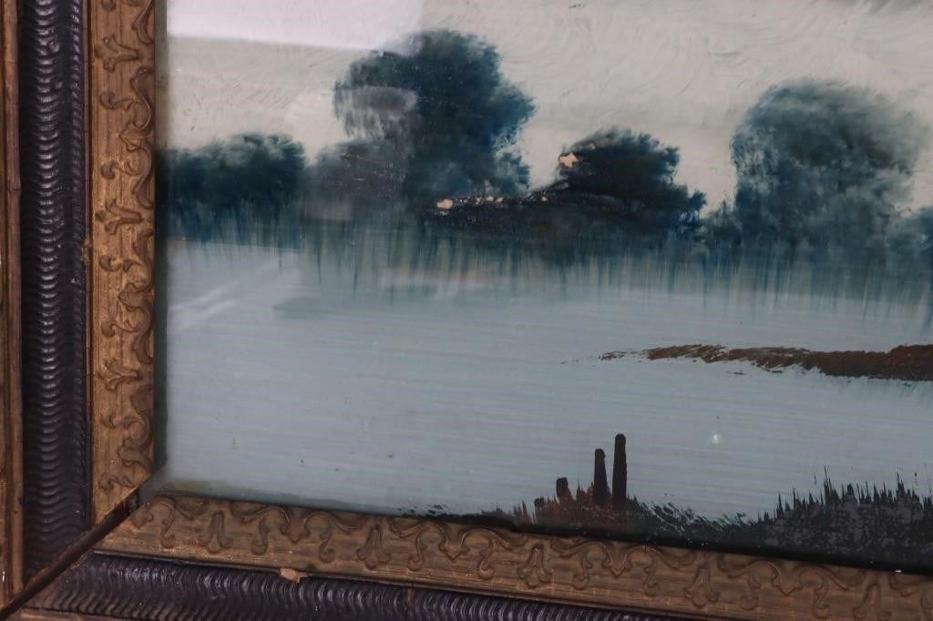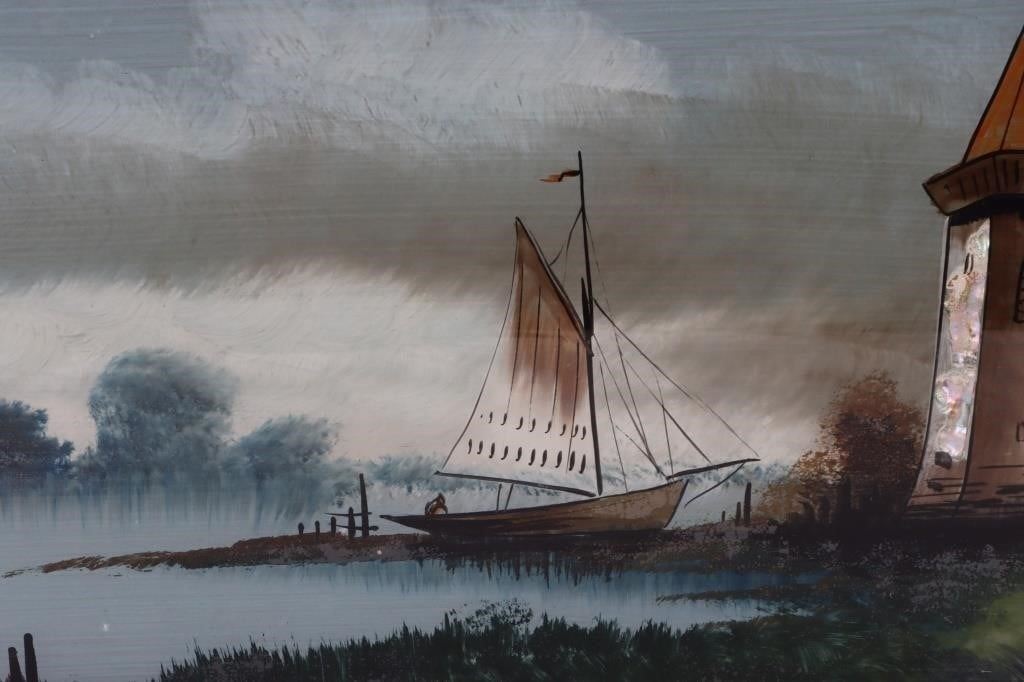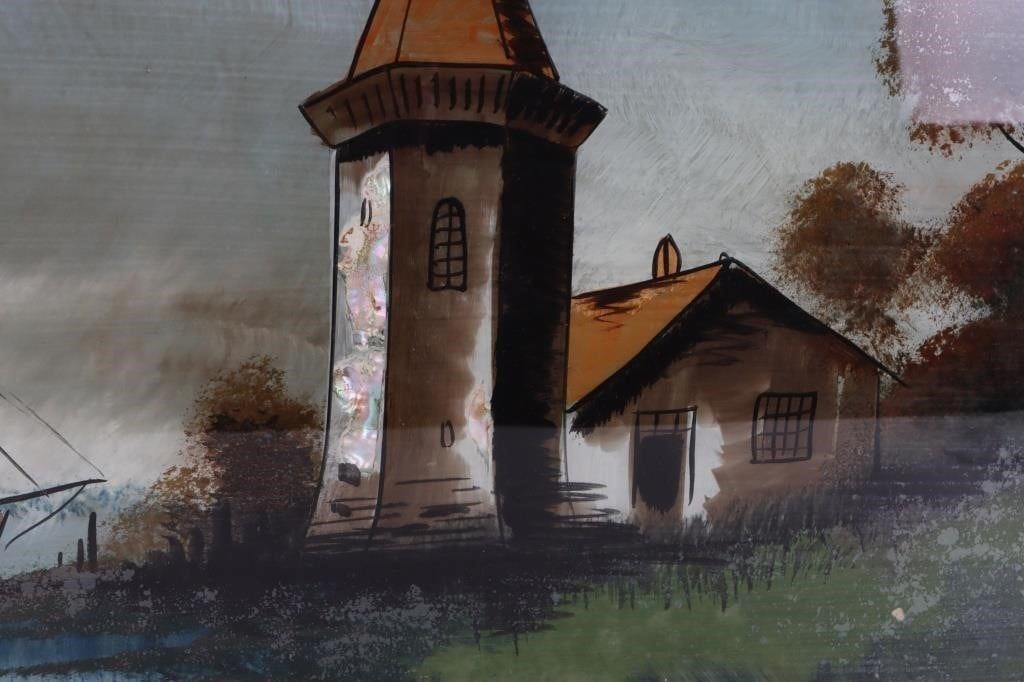 Lighthouse with boat on a lake painting. Painting beautifully done by an unknown artist.