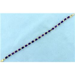 In 10K Yellow Gold. 7 1/4" long, with safety clasp. Contains twenty natural 6x4mm oval cut amethyst gemstones with highly saturated purple colo...