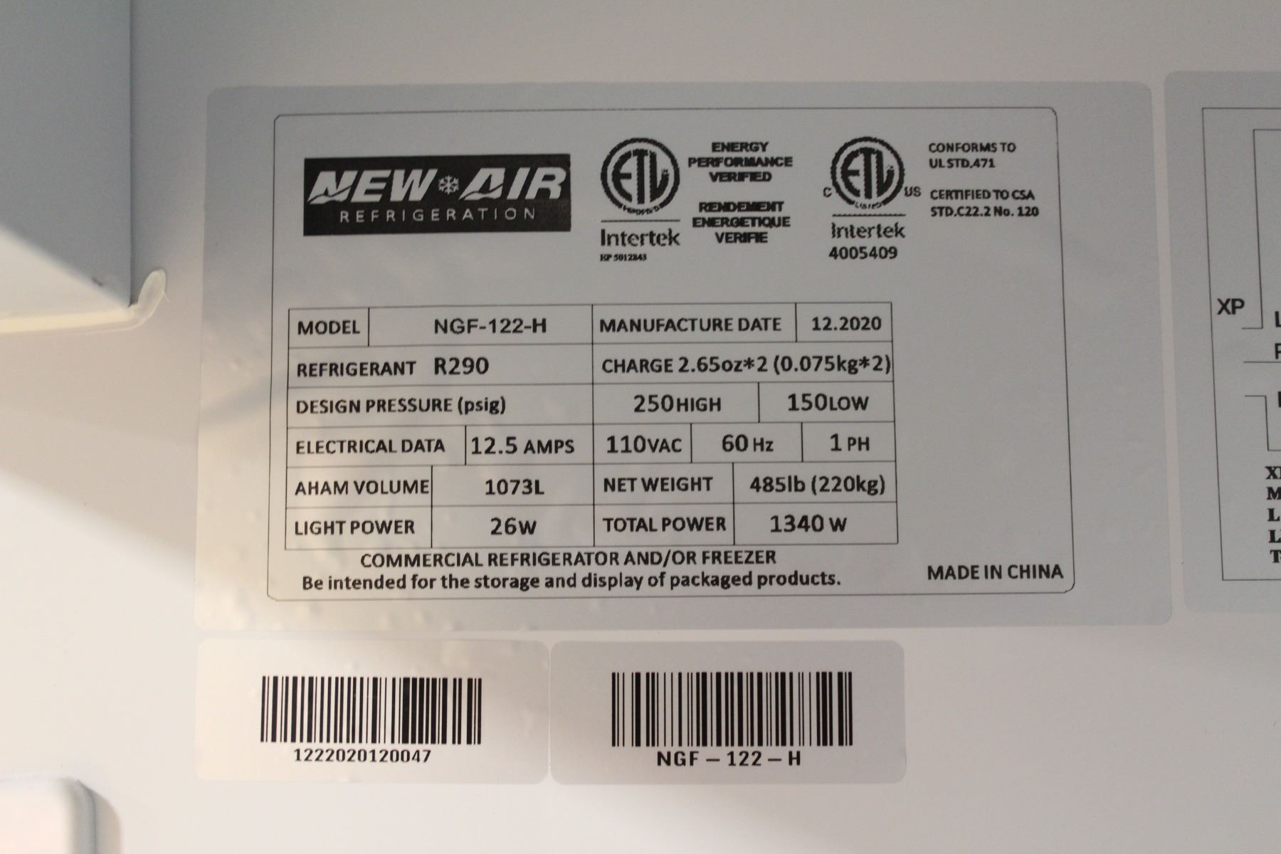 M# NGF-122-H, SINGLE PHASE, 110V, REFRIGERANT: R290. 1073 L CAPACITY. 1340W. MFG: 12/2020. 5-20P PLUG(20AMP) 54.5" X 33" X 78.5" **ALL ITEMS MUST BE REMOVED BY 5PM MONDAY, SEPTEMBER 12TH, 2022. ALL REMAINING ITEMS WILL BE SUBJECT TO A $6.00 PER DAY STORAGE CHARGE. ANY ITEMS REMAINING AFTER MONDAY, SEPTEMBER 26TH, 2022 WILL BE CONSIDERED FORFEITED. NO REFUNDS WILL BE ISSUED FOR FORFEITED ITEMS.** TO SCHEDULE A PICK UP APPOINTMENT CLICK HERE