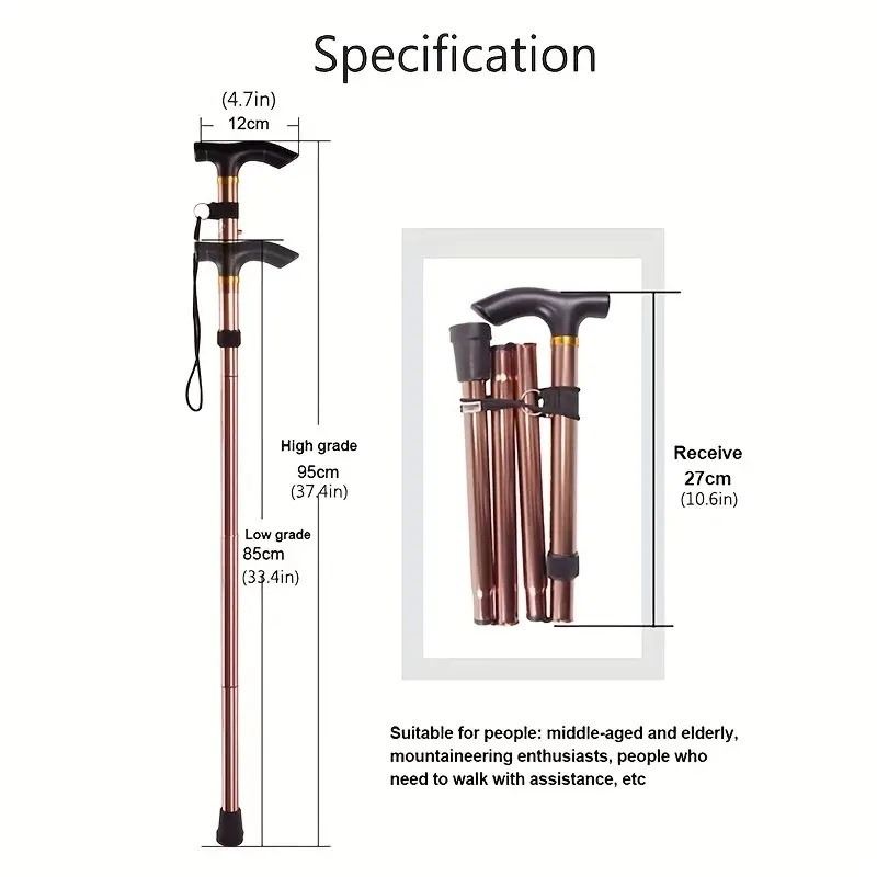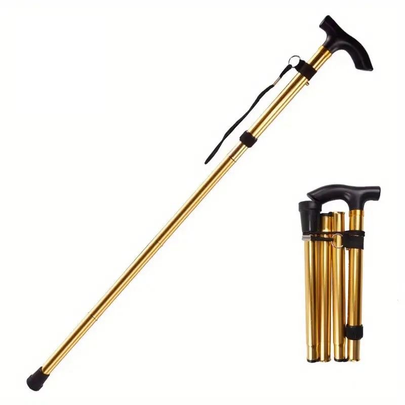 WALKING STICK/CANE WITH RUBBER HANDLE. FOLDS TO 11 INCHES.GOLDEN