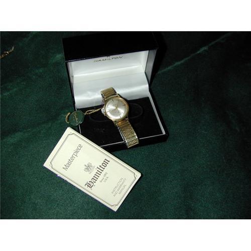 Gentlena's like new vintage Hamilton Watch. In its original box and with its instruction and warranty manual.Also with itts original tag.
