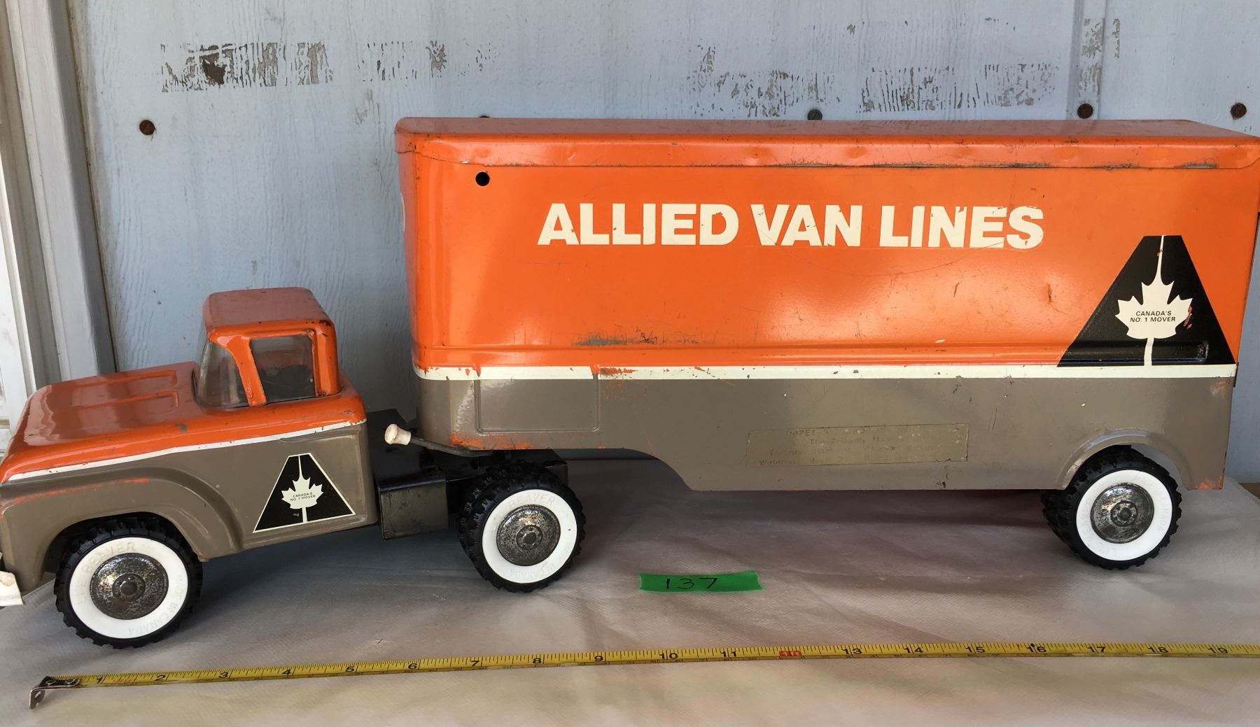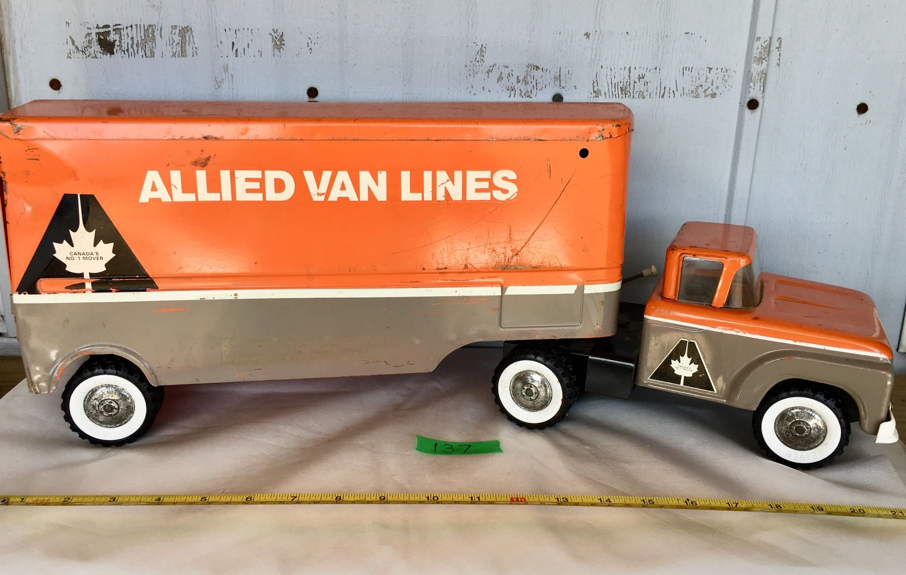 ALLIED VAN LINES TRUCK, TIN, APPROX 21". CONDITION: G