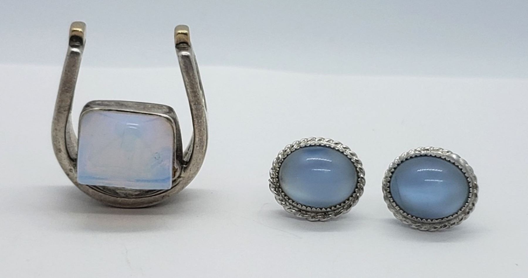 WITH MOONSTONE & SET of STERLING EARRINGS - 7.7 DWT