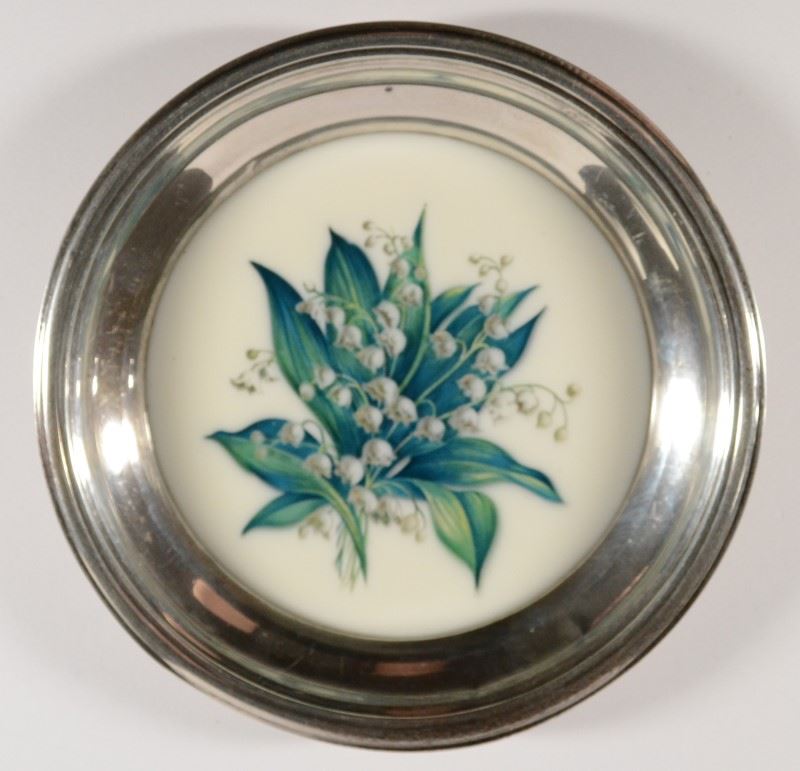 "LILY OF THE VALLEY" STERLING SILVER PLATE, 2.6 TROY Oz 5-1/2 INCH DIAMETER
