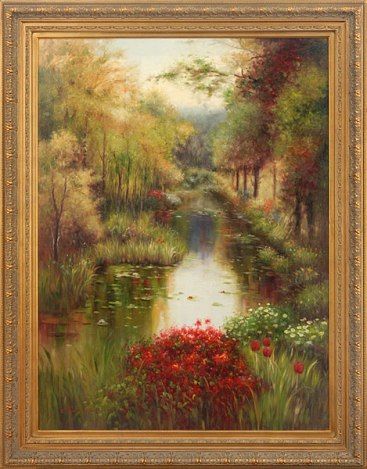 "LILY PADS" - ORIGINAL HAND PAINTED OIL ON CANVAS - PROFESSIONALLY FRAMED - IMAGE 36x 48" - FRAMED 44x 56"