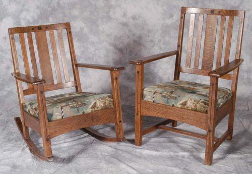LIMBERT INLAID ROCKER AND MATCHING ARMCHAIR, refinished, circa 1910, SHIPPING: See recommended third party shippers. This item can't be packed or shipped by seller.