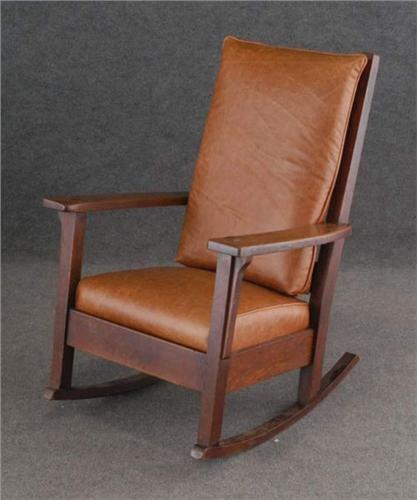LIMBERT OAK ROCKER, 28" wide, 39" high, condition: excellent orginal finish with quality leather pads,