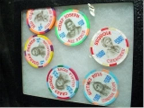 LIMITED EDITION COLLECTION OF SIX INDIAN TRIBE CASINO CHIPS. DISPLAY BOX NOT INCLUDED.