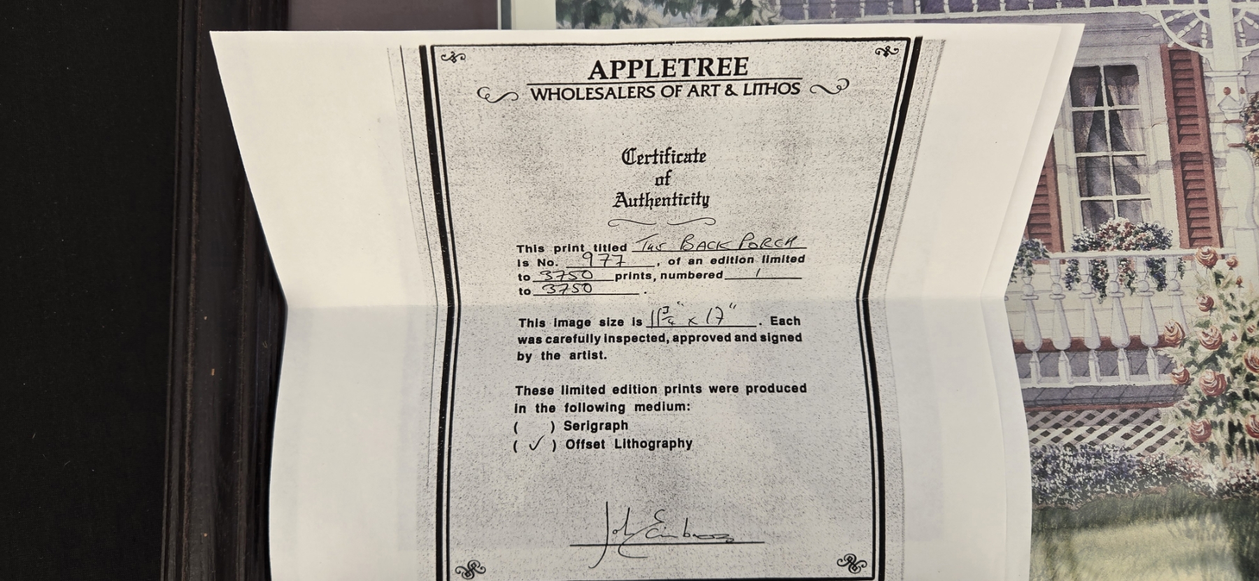 LIMITED EDITION LITHOGRAPH “THE BACK PORCH” #977/3750 W/ COA – 26”X21” SIGNED