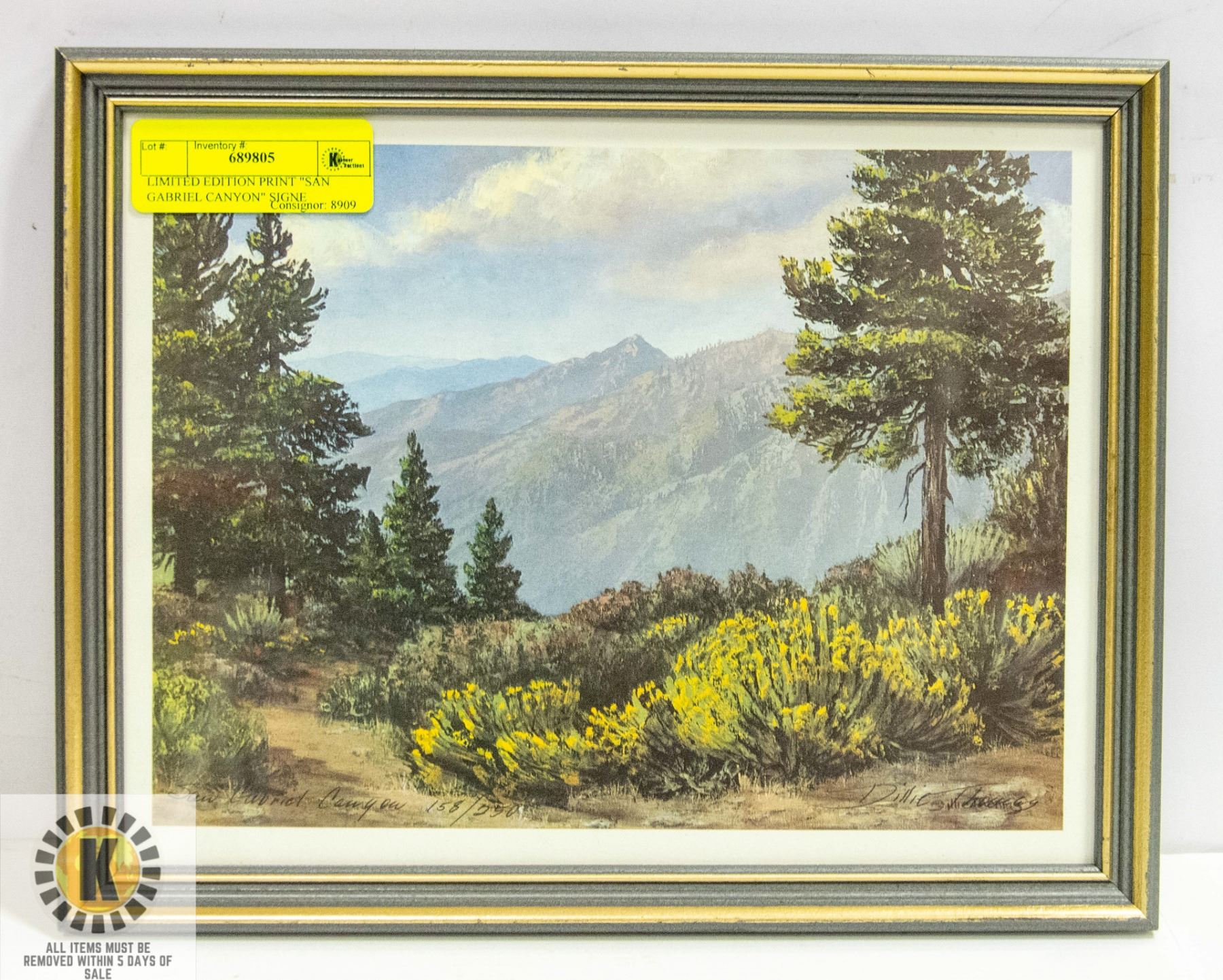 LIMITED EDITION PRINT "SAN GABRIEL CANYON" BY DILLI THOMAS #158/250. SIGNED. 10" X 12" ALL ITEMS MUST BE REMOVED WITHIN 5 DAYS OF SALE