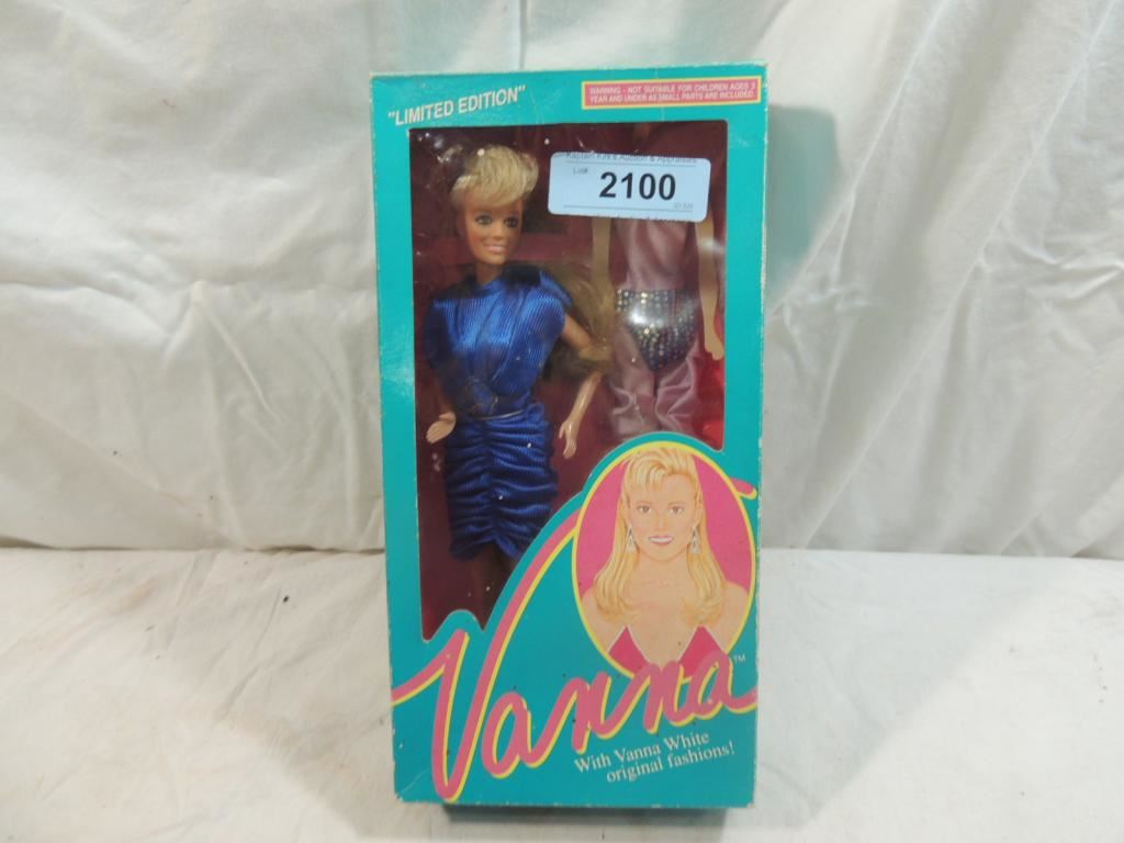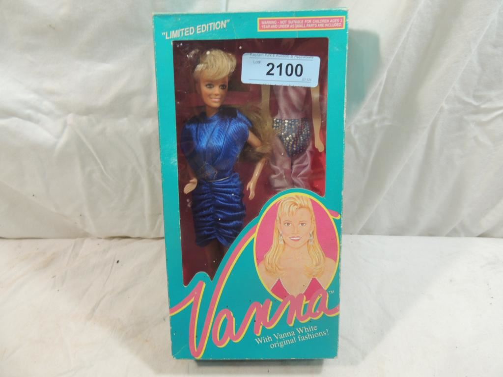 VINTAGE LIMITED EDITION VANNA WHITE DOLL, WITH ORIGINAL FASHIONS, COLLECTIBLE FASHION DOLL, NEW IN BOX, DECORATIVE DOLL, AS SHOWN SEE PHOTO FOR MORE DETAILS.
