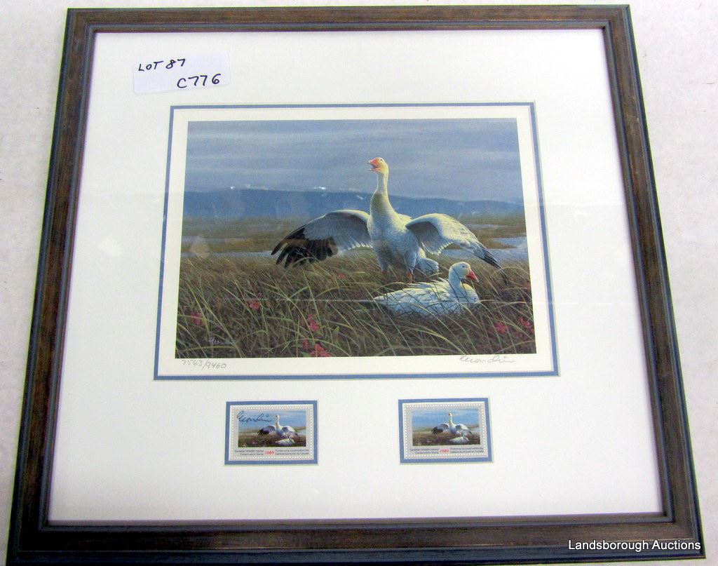 ONE IS 1989 BY JEAN-LUC GRONDIN SNOW GEESE THE OTHER IS BY MICHAEL DUMAS WOOD DUCKS 1990, BOTH COME WITH MATCHING DUCK STAMPS.