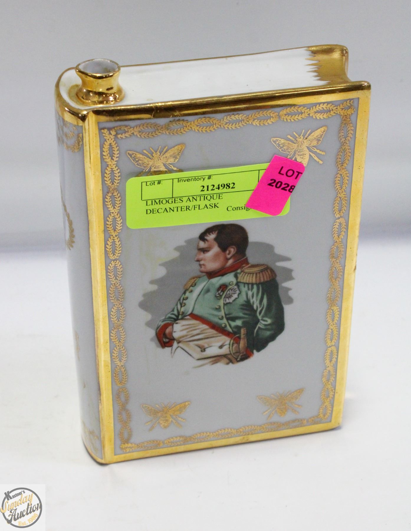 LIMOGES ANTIQUE DECANTER/FLASK H-8"
