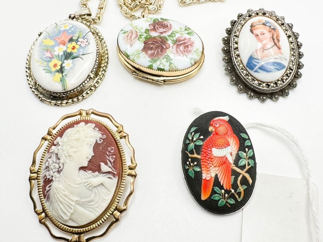 LIMEOGES CAMEO SILVERTONE LARGE BROOCH AND OTHER LARGE CAMEO BROOCHES