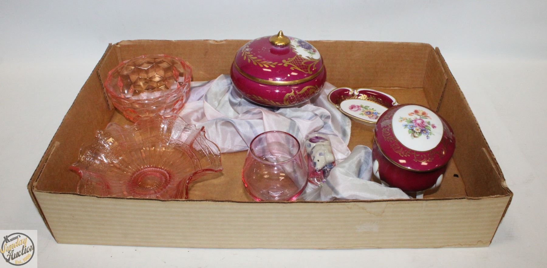 LIMOGES/DEPRESSION GLASS WITH SILK SCARF