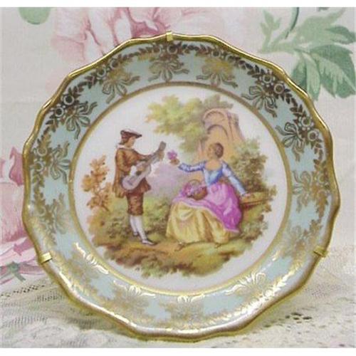 BEAUTIFUL GOLD GILTED MINIATURE PLATE, MADE BY LIMOGES FRANCE,IT DEPICTS ROMANTIC SCENE as per picture,MEASURES 4" in diam., - EXCELLENT CONDITION - US BUYER TO PAY 7.00 FOR SHIPPING PLUS INSURANCE.THANKS.