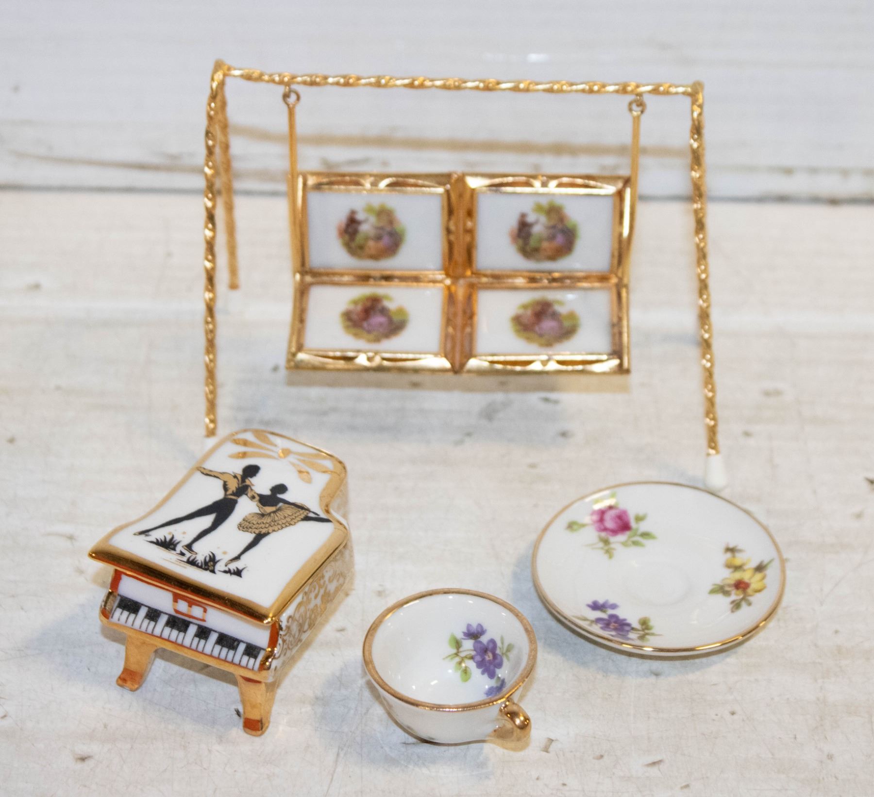 LIMOGES MINIATURE SWING, PIANO & CUP & SAUCER