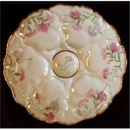Beautiful Limoges oyster plate with room for 6 oysters and sauce in the middle.