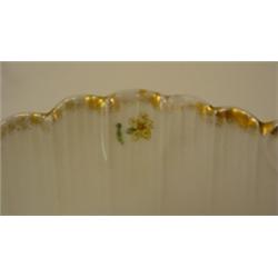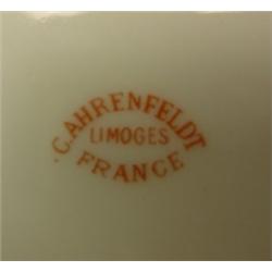 Limoges plate. Marked on bottom "C. Ahrenfeldt - France". Scalloped gold edge. All over flowers. 13.5" deep plate. Condition: One small rough spot on edge.