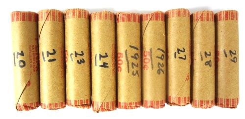 LINCOLN CENT CIRC ROLL LOT, 1 EACH 1920, 21, 23, 24, 25, 26, 27, 28, AND 1929